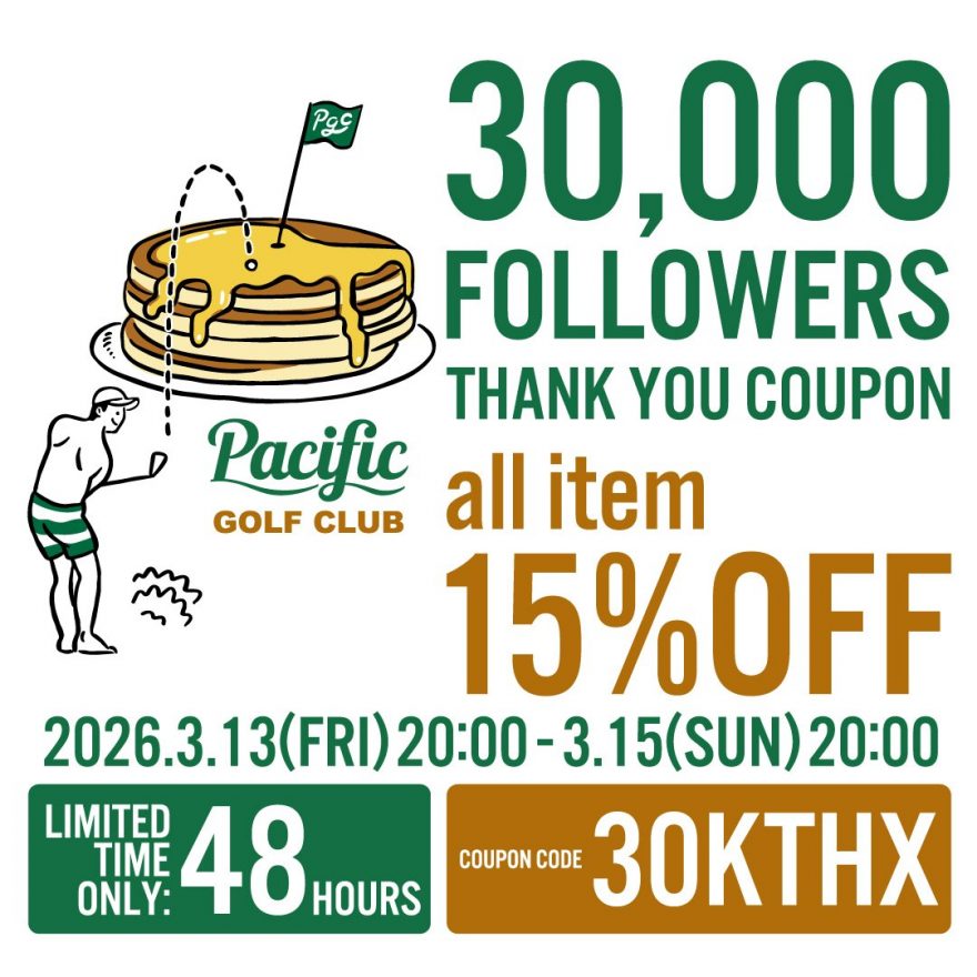 Instagram”3万フォロワー”達成の感謝を込めて、Pacific GOLF CLUB 七里ヶ浜に併設しているPGCショップ内すべてのアイテムが【15%OFF】になるキャンペーンを実施いたします✨